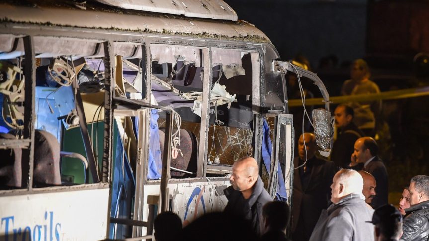 Sebuah bom pinggir jalan meledakkan sebuah bus wisata pada hari Jumat di dekat Piramida Giza, menewaskan tiga turis Vietnam dan pemandu Mesir mereka.