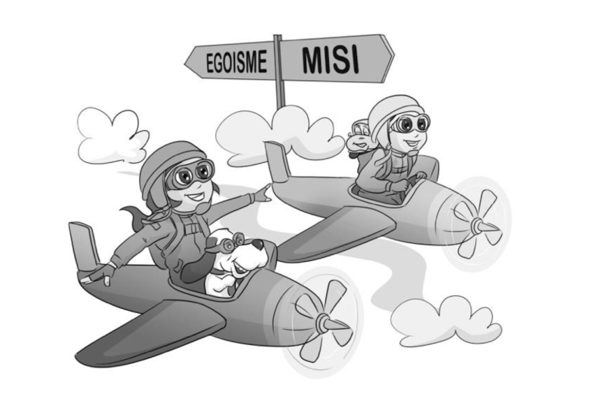 Karakter-karakter yang dinamis, yang memiliki makna adanya hasrat dan semangat dalam diri untuk terus menerus belajar. Gerakan yang sama melambangkan keseragaman dan kekompakan antara murid dan sang Guru, di mana sang murid mau saling berbagi dan terlibat langsung mengikuti gerakan Yesus, sang Misionaris Agung.