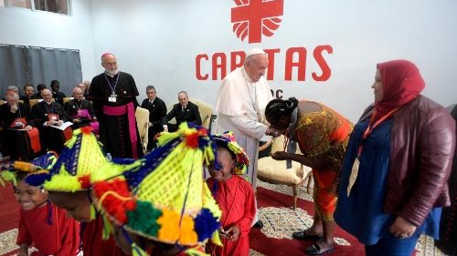 Paus Fransiskus berbicara tentang fenomena migrasi massal yang sedang berlangsung, pada hari Sabtu, selama pertemuan dengan para migran di pusat Caritas keuskupan di Rabat.