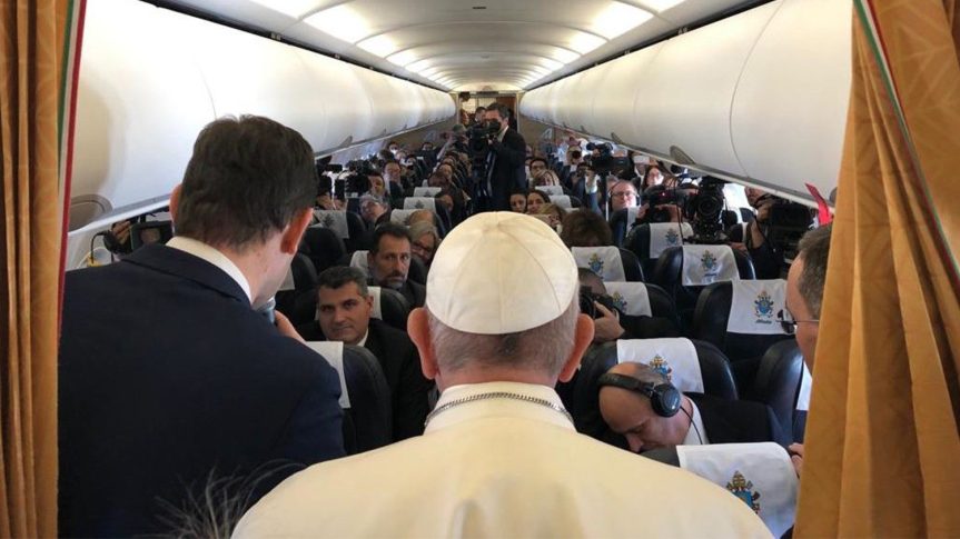 Menjawab pertanyaan yang diajukan kepadanya oleh wartawan dalam penerbangan kepausan dari Maroko, Paus Fransiskus menyentuh berbagai topik termasuk dialog dengan Islam, kebutuhan untuk melindungi hak-hak migran, dan kebebasan hati nurani.