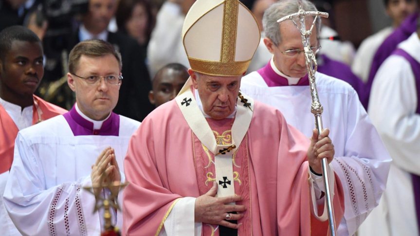 Paus Fransiskus merayakan Misa pada hari Minggu sore untuk hampir 10.000 anggota minoritas Katolik Maroko.