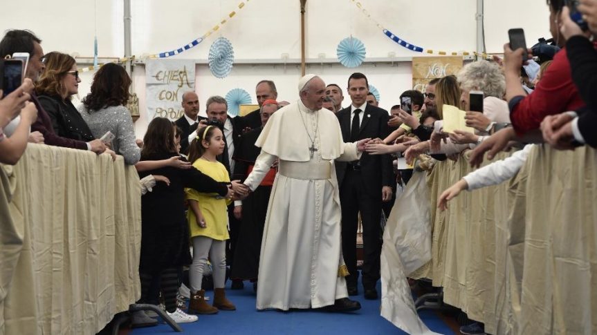Paus Fransiskus bertemu dengan para pekerja, relawan, pengantin baru, dan umat paroki muda dan tua dalam Kunjungan Pastoralnya yang kesembilan belas ke sebuah paroki Roma.