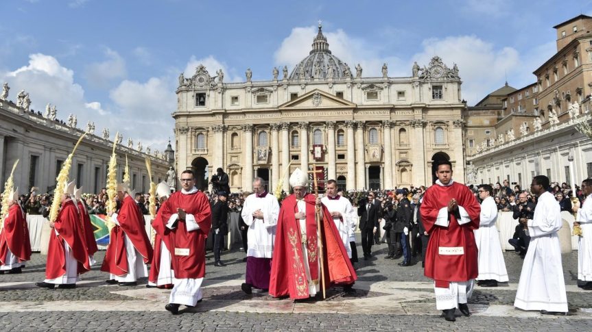 Ribuan peziarah berkumpul di Lapangan Santo Petrus untuk perayaan Minggu Palma yang menandai awal Pekan Suci. Hari Minggu Palma juga menandai Hari Kaum Muda Sedunia keuskupan dan orang-orang muda terlihat melambaikan daun palma dan ranting-ranting zaitun saat matahari bersinar.