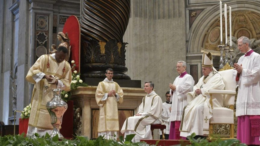 Pada pagi hari Kamis Putih, selama Misa Krisma di Basilika Santo Petrus, Paus Fransiskus merenungkan “tiga rahmat yang menjadi ciri hubungan antara Yesus dan orang-orang”.