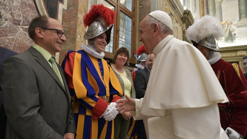Menjelang upacara sumpah tradisional Garda Swiss 6 Mei di halaman Istana Apostolik, Paus Fransiskus menerima 23 rekrutan baru pada hari Sabtu. Paus meminta mereka “untuk menjadi saksi dan rasul pembaruan pribadi dan komunitas.”
