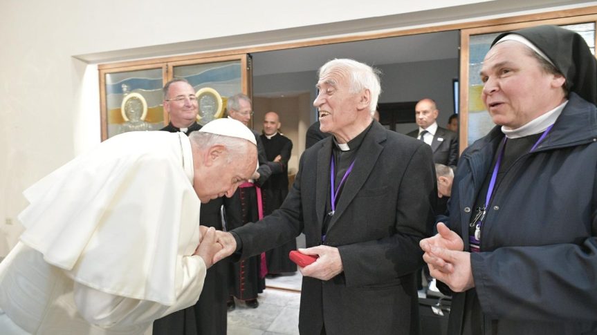 Terima kasih telah memberi saya kesempatan ini untuk bertemu dengan Anda. Saya khususnya bersyukur atas momen ini, di mana saya dapat melihat Gereja bernafas sepenuhnya dengan kedua paru-parunya – ritus Latin dan ritus Bizantium – dan menerima udara Roh Kudus yang selalu baru dan dibarui. Dua paru-paru yang diperlukan dan saling melengkapi, yang membantu kita lebih baik untuk merasakan keindahan Tuhan (lih. Evangelii Gaudium, 116). Mari kita bersyukur atas kesempatan ini untuk bernafas dalam-dalam, menyatu, dan merasakan betapa baiknya Tuhan telah menyertai kita.