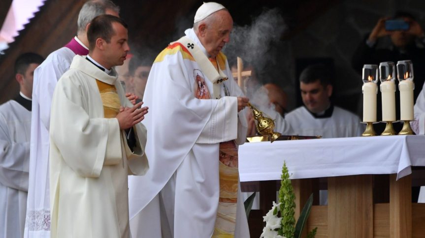 Paus Fransiskus memohon Maria untuk “mengajar kita menenun masa depan” selama perayaan Misa Kudus di Kuil Sumuleu-Ciuc di Rumania.
