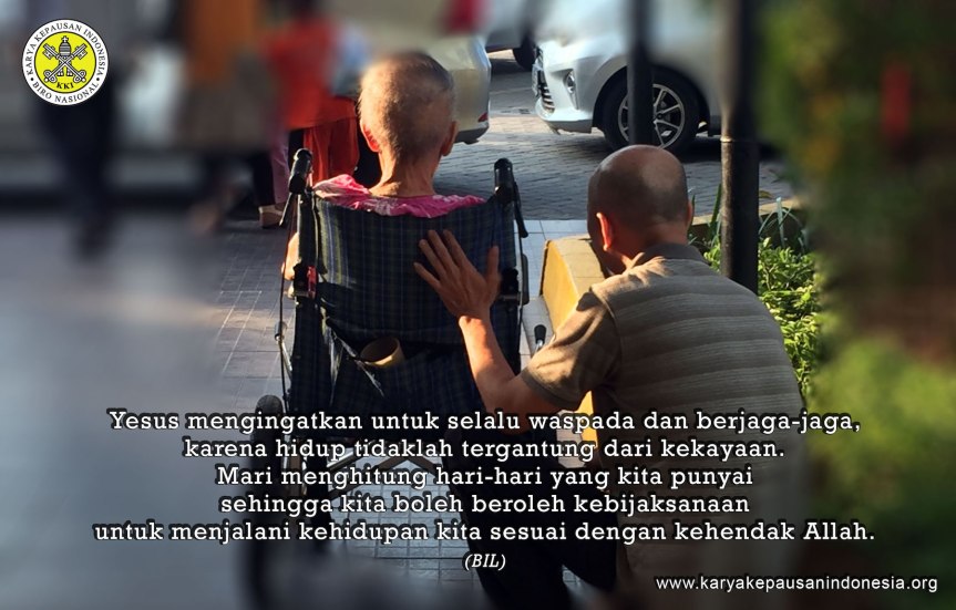 In today’s Gospel of Luke, Jesus reminds us to be always alert and awake, because life does not depend on wealth. We should listen by heart, in order not to become the treasure hoarder for ourselves, but to count the days we have, so we may have the wisdom to live according to God’s will.
