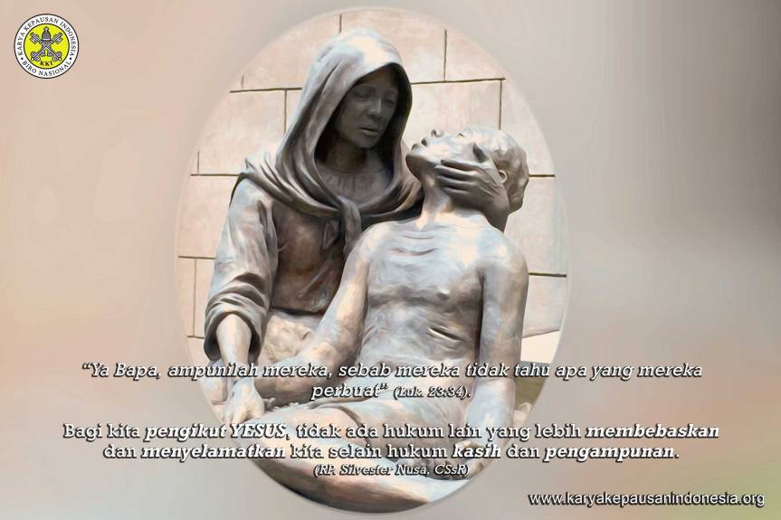 Kita harus berjuang untuk mempraktikkan hukum pengampunan karena kita menyadari bahwa kita pun tidak luput dari kesalahan dan bahwa Allah telah terlebih dahulu mengampuni kesalahan kita. Kesadaran dan keyakinan akan belas kasih Allah itu menjadi landasan utama bagi kita untuk berbelas kasih dan mengampuni, khususnya terhadap orang yang bersalah kepada kita. Marilah kita senantiasa mohon rahmat khusus dari Allah agar kita sanggup mempraktikkan hukum pengampunan sebagaimana yang diajarkan dan diteladankan oleh Yesus sendiri.