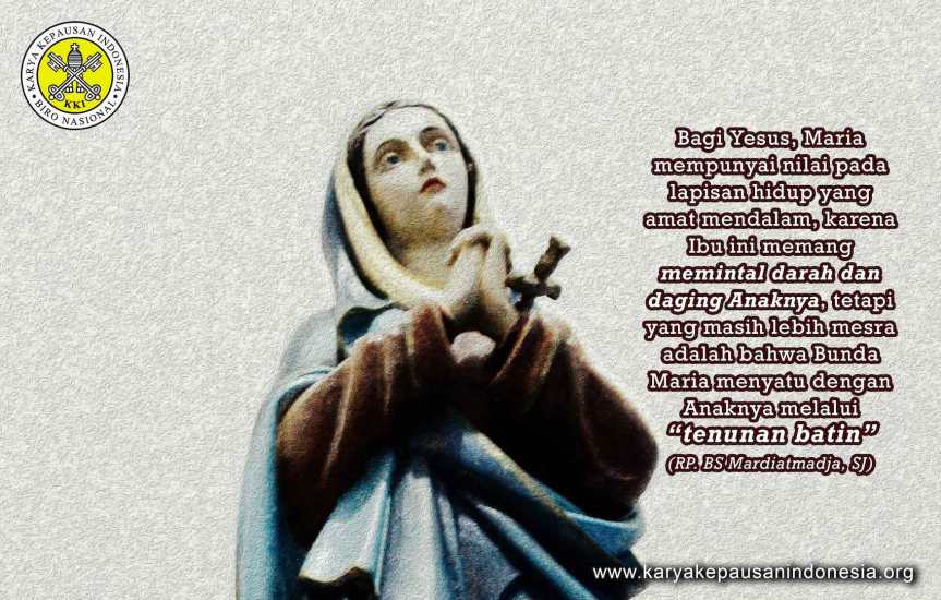 Banyak orang mencintai ibunya, yang melahirkan dirinya. Dalam kaitan itulah, orang saling mengasihi sebagai persekutuan para saudari dan saudara. Penginjil Lukas mau memperlihatkan, bahwa bagi Yesus, Gurunya, ada yang lebih mendalam dari diri Maria, daripada melahirkan Yesus. Dalam persekutuan para murid Kristus, ada yang jauh lebih dalam dari pada cinta kasih persaudaraan – yang memang sangat indah. Bagi Yesus, Maria mempunyai nilai pada lapisan hidup yang amat mendalam, karena Ibu ini memang memintal darah dan daging Anaknya, tetapi yang masih lebih mesra adalah bahwa Bunda Maria menyatu dengan Anaknya melalui “tenunan batin”, yang memadukannya dengan Allah Bapa, yang di-Amininya melalui kesediaannya menyambut Roh Kudus, untuk mengandung Sang Putera. Yesus bergandengan dengan Bunda Maria bukan hanya melalui ikatan darah-daging, melainkan melalui “jabatan hati” yang mesra sekali.