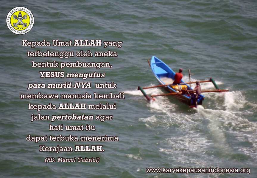 Kepada Umat Allah yang terbelenggu oleh aneka bentuk pembuangan, Yesus mengutus para murid-Nya untuk memberitakan damai-sejahtera, untuk menyembuhkan orang-orang sakit, dan untuk membawa manusia kembali kepada Allah melalui jalan pertobatan agar hati umat itu dapat terbuka menerima Kerajaan Allah.