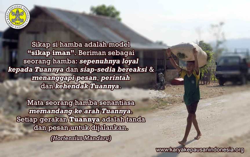 The servant’s attitude is the model of “attitude of faith”: having faith as a servant. How? First, be fully loyal to the master. This loyalty that makes him reliable and trustworthy. Quality faith makes us a reliable and trustworthy follower of Christ. Second, be prepared to react and respond to the message, command and will of God. A servant’s eyes always look towards his master. Every action of the master is the sign and message to carry out. Having faith as a servant means continuously contemplating (contemplating means “seeing”): seeking, comprehending and formulating action that is related to God’s will and plan for me, for my fellowship and my environment. Third, not claiming nor demanding anything as “merit”. A servant cannot demand merit or praise from his master.