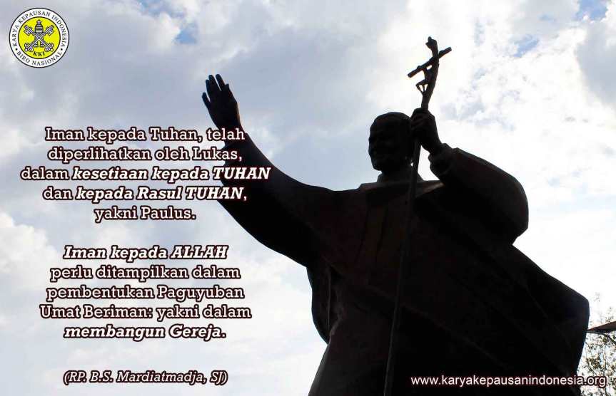 Bacaan Pertama pada Hari Pesta St. Lukas ini, memperlihatkan seorang murid Paulus, yang selalu setia, juga ketika begitu banyak orang, telah meninggalkannya. Itulah Lukas. Iman kepada Tuhan, telah diperlihatkan oleh Lukas, dalam kesetiaan kepada Tuhan dan kepada Rasul Tuhan, yakni Paulus. Surat kepada Timotius ini menunjukkan, bagaimana iman kepada Allah perlu ditampilkan dalam pembentukan Paguyuban Umat Beriman: yakni dalam membangun Gereja. Rupanya, sudah sejak zaman Gereja Perdana, tidak mustahil ada orang yang mengatakan beriman kepada Tuhan, namun mempunyai masalah dengan komunitas gerejawi.