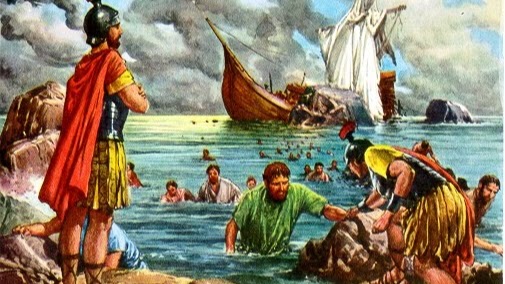 Terdapat tiga kelompok yang berbeda berada di atas kapal yang membawa Santo Paulus ke Roma sebagai tahanan. Kelompok yang paling berkuasa terdiri dari prajurit-prajurit di bawah seorang perwira. Lalu ada para pelaut, yang secara naluri semua orang yang berada di kapal bergantung pada mereka selama perjalanan panjang. Akhirnya, ada kelompok yang paling lemah dan paling rentan, yakni para tahanan.