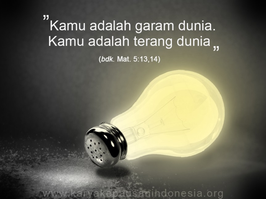 Dalam Injil hari ini (bdk. Mat 5:13-16), Yesus berkata kepada murid-murid-Nya: “Kamu adalah garam dunia. Kamu adalah terang dunia” (ayat 13, 14). Kepada orang-orang yang ingin mengikuti-Nya, Yesus mempergunakan bahasa simbolis untuk menunjukkan beberapa kriteria untuk menghayati kehadiran dan kesaksian mereka di dunia.