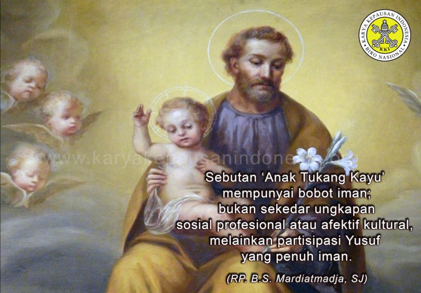 Secara budaya kemasyarakatan, Yusuf menjadi Pemimpin Keluarga Kudus, tempat Sang Putera dihadirkan dan dibesarkan. Namun, seluruhnya menjadi ‘kudus, karena iman Yusuf’. Dalam iman itulah Yusuf mengambil bagian dalam penebusan, bukan hanya secara administratif karena dialah keturunan Daud serta dialah pendidik resmi Yesus. Dengan dasar itu, seluruh pengalaman Yusuf dalam mimpi maupun dalam pelayanan hidup sehari-hari adalah mengungkapkan imannya; bersama dengan Maria, yang juga penuh iman mengatakan ‘ya’. Kesediaan Yusuf menyambut tugas mendampingi Maria, mengandung, melahirkan, membesarkan Kanak-Kanak Yesus, adalah ‘wujud “ya” dari Tukang Kayu’. Itulah sebabnya pula, sebutan ‘Anak Tukang Kayu’ mempunyai bobot iman; bukan sekedar ungkapan sosial profesional atau afektif kultural, melainkan partisipasi Yusuf yang penuh iman.