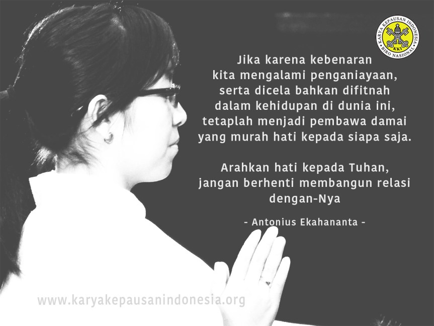 Kami menggabungkan diri dengan Hati Yesus yang Mahakudus agar dari lubuk hati yang terdalam atau sungguh-sungguh mengusahakan keadilan bagi seluruh bangsa kami. Kami mohon…