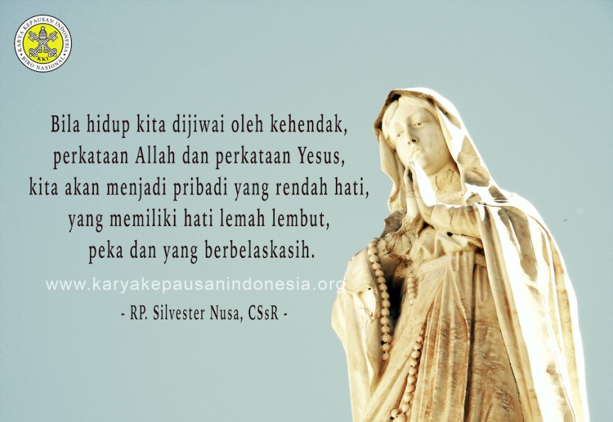 Hari ini kita memperingati Hati Tersuci Santa Perawan Maria. Hati adalah sumber kehidupan, asal-usul perasaan dan rencana-rencana manusia. Kualitas pikiran dan kehendak, emosi dan pembicaraan, sikap dan kelakuan manusia ditentukan oleh hatinya. Menurut Paus Yohanes Paulus II, hati bukanlah sumber perasaan sentimental, melainkan sumber kemampuan untuk membuka diri bagi sesama dan memahami orang lain. Kualitas diri seseorang ditentukan oleh kualitas hatinya. Bagaimana kualitas hati Bunda Maria?