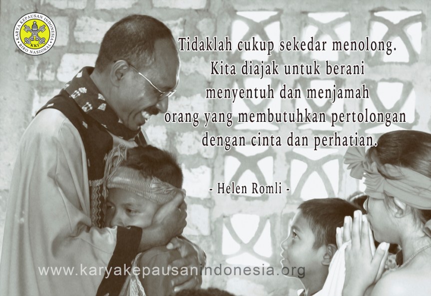 Pada Injil hari ini Tuhan Yesus menyembuhkan orang kusta dengan jalan menjamah-Nya. Kita pun mesti meringankan beban orang dengan berani siap untuk menyentuh dan masuk mendekat dalam kehidupan orang tersebut. Tidaklah cukup sekedar menolong. Kita diajak untuk berani memastikan bahwa orang yang membutuhkan pertolongan, harus kita sentuh atau jamah dengan cinta dan perhatian. Yesus tidak sekedar datang menyembuhkan, tetapi Ia datang untuk menerima dan mengembalikan penderita pada masyarakat yang pernah menolaknya. Sebagai seorang misionaris, kita diharapkan tidak hanya puas dan berhenti pada ‘penyembuhan’, kita juga harus peduli pada kehidupan orang lain. Itulah sebabnya Yesus berkata; “Perlihatkanlah dirimu pada imam, dan persembahankanlah persembahan yang diperintahkan Musa, sebagai bukti bagi mereka” (Mat. 8:4).