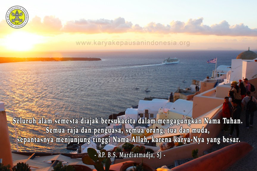 MAZMUR TANGGAPAN – Mazmur 148:1-2.9-13: Umat diajak untuk bergembira ria, memuliakan Nama Allah. Bahkan seluruh alam semesta diajak bersukacita dalam mengagungkan Nama Tuhan. Semua raja dan penguasa, semua orang, tua dan muda, sepantasnya menjunjung tinggi Nama Allah, karena karya-Nya yang besar.