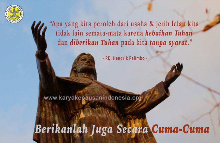 Hal inilah yang juga terus diingatkan oleh Yesus ketika Dia mengutus murid-murid-Nya, “Kalian telah memperolehnya dengan cuma-cuma karena itu berikanlah pula dengan cuma-cuma”. Yesus tahu betul bahwa manusia memiliki kecenderungan: selalu merasa dirinya hebat; merasa apa yang dimilikinya dikarenakan usahanya sendiri; ingin mendapatkan nama, kedudukan terhormat; ingin dipuji atas kebaikannya; dan manusia mudah menjadi kecewa bila merasa tidak dihargai atas kebaikan yang telah diperbuatnya. Para murid terus diingatkan bahwa apa yang telah mereka peroleh yaitu punya kuasa untuk menyembuhkan orang sakit, membangkitkan orang mati, mentahirkan orang kusta dan mengusir setan-setan adalah diperoleh dengan cuma-cuma. Karena diperoleh pula dengan cuma-cuma maka haruslah pula diberikan dengan cuma-cuma kepada mereka yang membutuhkannya. Sesungguhnya pesan Yesus ini juga masih relevan dan berlaku untuk kita. Apa yang kita alami sampai saat ini, apa yang kita peroleh dari usaha dan jerih lelah kita tidak lain semata-mata karena kebaikan Tuhan dan diberikan Tuhan pada kita tanpa syarat. Tuhan sungguh mengasihi kita dan mengajak kita untuk menjadi saluran rahmat dan berkat bagi setiap orang. Seperti Ia mengasihi kita tanpa syarat, Ia mengajak kita juga menjadi saluran rahmat-Nya dalam tugas perutusan kita masing-masing.