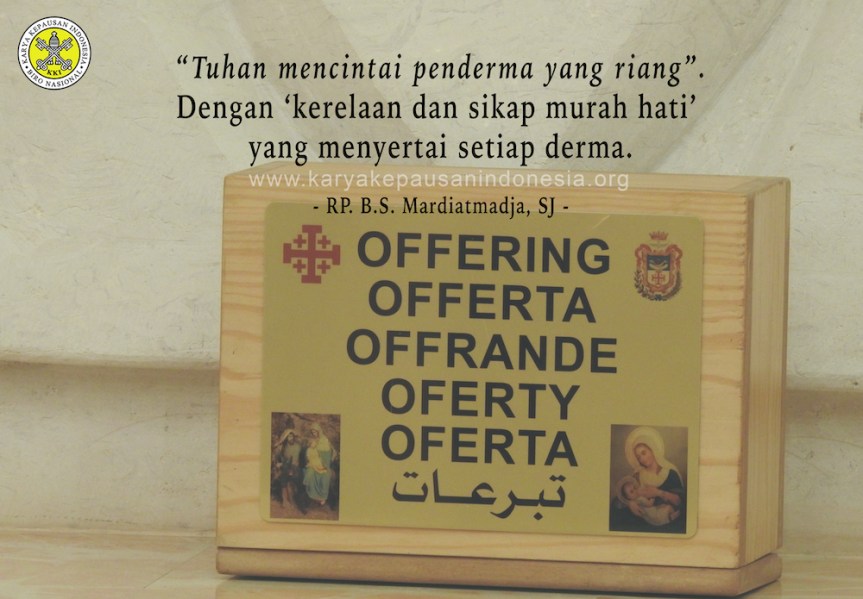 BACAAN PERTAMA – 2Korintus 9:6-10: Paulus mengajak semua ‘asisten’ atau ‘cooperatores’-nya dalam pastoral, hendaknya melaksanakan partisipasinya dalam membangun komunitas gerejawi: berhati rela. Isi pokoknya adalah bahwa kita diundang untuk melaksanakan tugas-tugas kegerejaan sepenuh hati dan tidak dengan ‘merasa terpaksa’. Sebab, dikatakannya “Tuhan mencintai penderma yang riang”. Dapat saja kalimat tersebut tadi dikaitkan dengan’derma keuangan atau benda materiil’, yang tentu saja dapat merupakan ‘pengorbanan yang berat’ bagi orang-orang yang ’miliknya terbatas’. Namun umat sesungguh-sungguhnya mempunyai banyak hal, yang dapat amat diperlukan oleh sesamanya. Yang paling dekat dengan ’derma harian’ adalah ‘kerelaan dan sikap murah hati’ yang menyertai setiap derma. Itulah yang oleh Paulus amat dipentingkan. Pada masa sekarang, menyumbangkan waktu dan per-hati-an juga dapat menjadi bagian dari partisipasi penting dalam pembangun komunitas gerejawi. Intensi terdalam setiap pemberian adalah bahwa Allah sudah lebih dahulu ‘memberikan Diri-Nya’ bagi keselamatan kita. Kepada orang Korintus diingatkan, bagaimana “…Allah dengan murah hati …memberi kepada orang-orang miskin, kebaikan-Nya tetap selama-selamanya”. Menjadi problematis, apabila kita memberi derma, ”supaya mendapat ‘ganti’ berupa anugerah lain”. Apalagi, Tuhanlah justru yang akan melipatgandakan karunia-karunia-Nya; tanpa diminta.