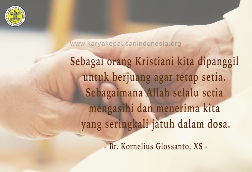 Komitmen manusia untuk mencintai bisa berubah seiring waktu. Namun komitmen Allah mencintai manusia tidak pernah berubah. Itulah mengapa mereka yang menerima sakramen perkawinan dipanggil untuk mencintai sebagaimana Allah mencintai. Betapapun mungkin berat dan sulit untuk menjaga janji tersebut dalam keluarga seiring perjalanan waktu, sebagai orang Kristiani kita dipanggil untuk berjuang agar tetap setia. Sebagaimana Allah selalu setia mengasihi dan menerima kita yang seringkali jatuh dalam dosa.