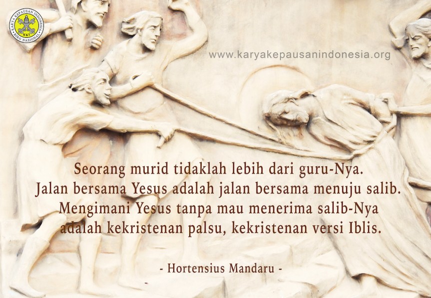 Dari batu-karang menjadi batu-sandungan! Dalam satu minggu saja, Petrus berubah total. Minggu lalu ia dijuluki si batu-karang, fondasi Gereja Kristus yang tak terkalahkan gerbang maut, minggu ini dia menjadi batu-sandungan dan dicap sebagai “Iblis”. Apakah Petrus memang berubah secepat itu? Mungkinkah pengakuannya seminggu lalu hanya semu? Marilah kita coba memahami perjalanan iman si nelayan sederhana ini. Pengakuannya tentang Yesus sebagai Mesias, Anak Allah yang hidup adalah buah pewahyuan dari Bapa. Itu bukanlah hasil sekolah atau pendapatnya sendiri. Hari ini barulah kita mendengar apa yang sesungguhnya ada dalam benak Petrus dan teman-temannya. Mereka masih kuat memeluk paham Mesias yang jaya dan menang; Mesias yang pantang menyerah kalah, apalagi tewas mengenaskan di tiang salib penjajah kafir Romawi! Petrus dan para murid Yesus tampaknya hanya berubah dari tidak mengerti menjadi salah mengerti! Mereka tahu bahwa Yesus itu Mesias, Anak Allah, tetapi keliru mengenai bagaimana caranya Ia menjadi Mesias dan Anak Allah. Mereka harus paham bahwa: Yesus adalah Mesias yang menderita, karena Dia itu Anak yang taat!