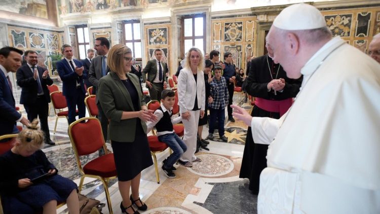 Saya menyambut Anda di sini di Vatikan. Saya senang melihat wajah Anda, dan saya membaca di mata Anda bahwa Anda juga senang bersama saya saat ini.