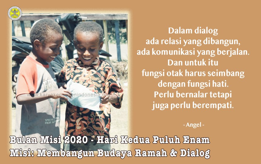 Misi kita hari ini: menjadikan budaya ramah tamah, sopan santun dan dialog sebagai ciri Kristianitas kita terhadap sesama. (BIL)