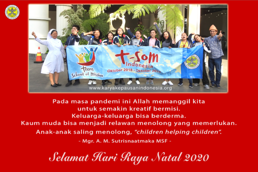 Keluarga-keluarga bisa berderma. Kaum muda bisa menjadi relawan menolong penderita yang memerlukan. Anak-anak yang sangat tulus dalam menolong temannya yang menderita, dengan apa yang bisa mereka melakukan, “children helping children”, anak bantu anak. Anak-anak dapat membantu teman-temannya lewat doa, derma, dan perhatian, sehingga anak dapat menjadi sahabat bagi temannya. Justru pada masa pandemi ini Allah memanggil kita untuk bermisi secara kebih luas dan lebih banyak bidangnya. Pada perayaan Natal di masa pandemi ini, marilah kita manfaatkan kesempatan untuk semakin kreatif bermisi.
