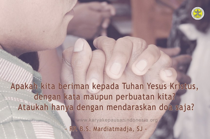 - Apakah kita beriman kepada Tuhan Yesus Kristus, dengan kata maupun perbuatan kita? Ataukah hanya dengan mendaraskan doa saja?