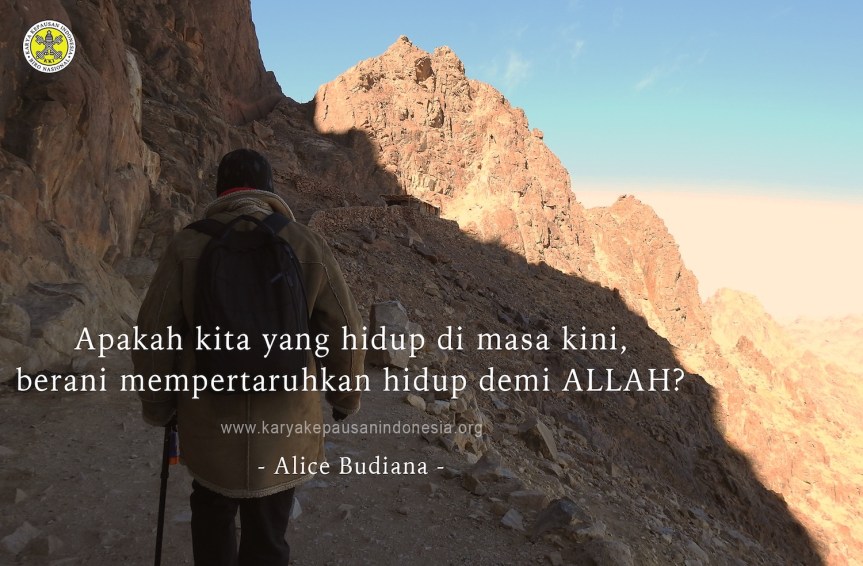 Apakah kita yang hidup di masa kini, berani mempertaruhkan hidup demi Allah? Berani bersaksi untuk kemuliaan Allah, supaya orang lain percaya kalau kita memiliki Allah yang luar biasa? Mungkin lebih sering kita kurang iman. Iman kita menjadi kendor di tengah penganiayaan. Salib atau Rosario di mobil kita turunkan saat terjadi huru-hara di jalan. Tidak berani berdoa membuat tanda salib saat kita berada di tengah kumpulan orang non katolik. Seringkali kita takut dikatakan fanatik. Lebih memilih yang aman saja. Bebas berbuat semaunya yang menurut kita benar, bukan yang benar menurut Tuhan.