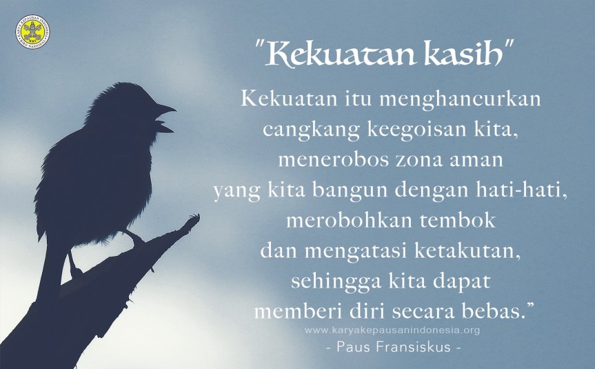 Hal tersebut ditegaskan pula oleh Yesus sebagaimana kita baca dalam Injil: “Seperti Bapa telah mengasihi Aku, demikianlah juga Aku telah mengasihi kamu; tinggallah di dalam kasih-Ku itu. Jikalau kamu menuruti perintah-Ku, kamu akan tinggal di dalam kasih-Ku, seperti Aku menuruti perintah Bapa-Ku dan tinggal di dalam kasih-Nya.” (Yoh.15:9-10) Iman kita akan Allah yang adalah Kasih menuntun kita akan perwujudan buah-buah kasih itu sendiri dalam kehidupan kita sehari-hari. Kita bisa melihat perwujudan kasih itu dalam surat Rasul Paulus (1Kor. 13:4-7): Kasih itu sabar; kasih itu murah hati; ia tidak cemburu; ia tidak memegahkan diri dan tidak sombong… Dan itulah yang membuat hati kita akan dipenuhi dengan sukacita Injli. Perilaku yang demikian seharusnya menjadi landasan segala bentuk tradisi dan praktik beragama kita. Mengasihi Allah melalui sesama membuat kita mampu melihat lebih dalam dan jernih segala tradisi dan ritual keagamaan kita. Sebab tanpa cinta kasih tersebut tindakan dan praktik-praktik beragama itu akan menjadi kering dan hampa. Maka marilah kita dengan rendah hati memohon bimbingan Roh Kudus, agar melalui diri kita, orang lain sanggup merasakan kasih Allah dalam wujud yang paling nyata. Tuhan memberkati.