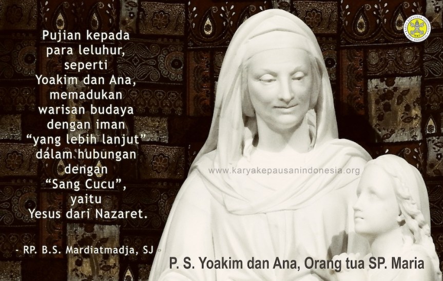 Penghormatan kepada Bapak/Ibu, Opa dan Oma merupakan tradisi yang dipegang teguh oleh kebanyakan bangsa di seluruh dunia. Namun bakti kita kepada Bapak dan Ibunya Maria menjangkau melampaui hasrat bakti manusiawi. Sebab Maria diakui oleh Yesus (Mat. 12:46-50) karena Bunda-Nya mendengarkan Pesan Bapa dan menyambut-Nya dengan ucapan iman: “Aku ini hamba Allah, terjadilah padaku menurut Kehendak-Mu”. Dalam suasana itulah hari ini dirayakan dalam Gereja.