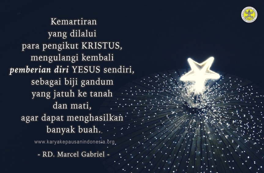 Kemartiran, dalam terang Firman Tuhan hari ini, sesungguhnya merupakan tanggapan yang paling ekstrem menyambut “kemurahan hati Allah” (II Korintus 9, 9). Seseorang yang berani memberikan hidupnya kepada Allah, pastilah dia yang sudah mengetahui rahasia “kebenaran Allah yang tetap untuk selama-lamanya” itu, sehingga dirinya tidak ingin lepas lagi, melainkan erat bersatu dengan Sang Kebenaran itu sendiri, sekalipun dia harus kehilangan nyawanya. Kemartiran yang dilalui para pengikut Kristus, mengulangi kembali pemberian diri Yesus sendiri, sebagai biji gandum yang jatuh ke tanah dan mati, agar dapat menghasilkan banyak buah (Yohanes 12, 24). Dan sejarah Gereja membuktikan kebenaran Firman ini, dengan menegaskan adagium “Darah para martir adalah benih Kekristenan.”