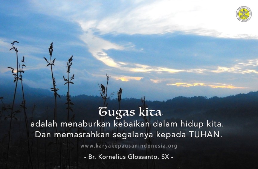 Sebagai penabur kita diajak untuk terus menaburkan benih-benih kebaikan. Sebab selalu ada harapan bahwa kebaikan dan cinta kasih yang kita taburkan akan menyentuh hati orang-orang dan bertumbuh kembang dalam hidup mereka. Hingga pada akhirnya orang-orang tersebut mampu menyalurkan buah-buah kebaikan yang baru sebagaimana telah mereka terima.