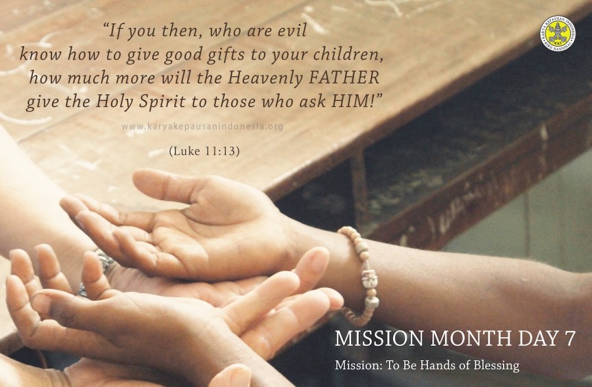 In today’s Gospel Jesus the Lord teaches us that we have to be initiative. The Lord will see all our efforts. We need to ask, seek and knock God’s heart, so we can get what we ask and seek. God will open His door if we knock in a correct way. Therefore, let’s ask for His blessings, so w can be healed and become the blessing to others. We are grateful for the blessing of life which the Lord gives us by accepting the life as it is, to give room to our contradictory, unexpected and disappointing part of our lives. As written in the document of Patris Corde, the Lord always give us strength and joy in our life. We have received them all free from the God, so let us share it free to others too. May our life become more blessings for those in need.