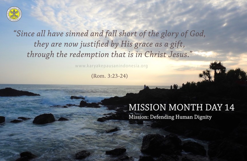 In the first reading, Apostle Paul wrote that God has put forward Christ Jesus as a sacrifice of atonement by his blood, effective through faith. God has sent His Son, Jesus, to redeem all humans. This proves God’s true love to human of His creation. He wants all humans receive lives full of joy in communion with Him. God has set free and restored human dignity from sins. What shall we do in return? As God’s creation of His image, we should take part in defending human dignity. How? We can love others by treating them good, fair, honestly, politely and care for the needy, respecting each other. We treat others as we treat ourselves. As God has shown His mercy to us, so do we have to show mercy to others. We have to share what we receive from God in order to reach the love, peace and joy as God wishes.