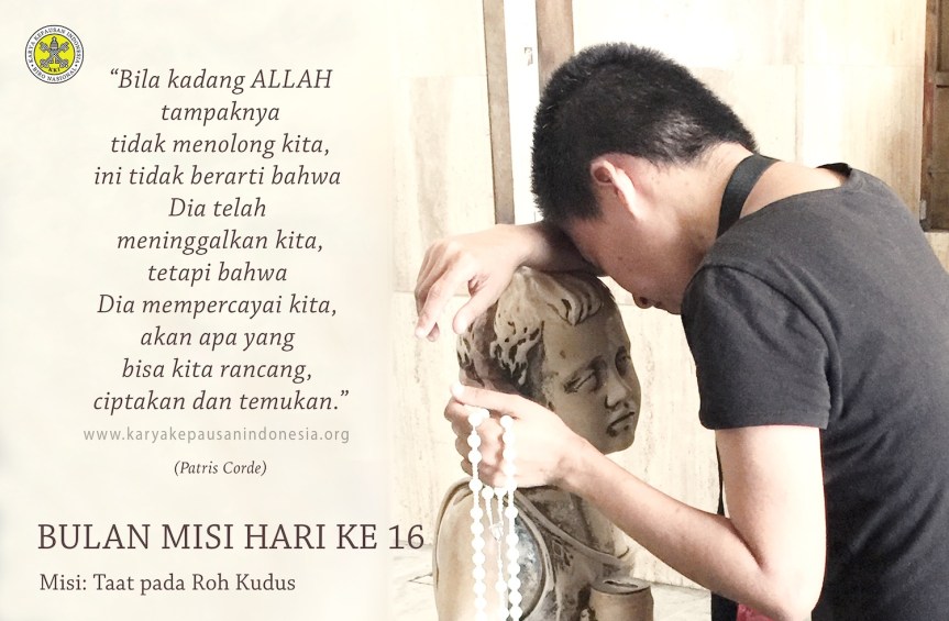 Misi: Iman kepercayaan kepada Allah, harus tetap dibina. Kadang bisa timbul keraguan ketika kita mengalami badai dan masalah, seakan Allah tidak menolong, tapi percayalah Allah tetap berkarya dalam segala peristiwa dalam hidup kita. (NW)