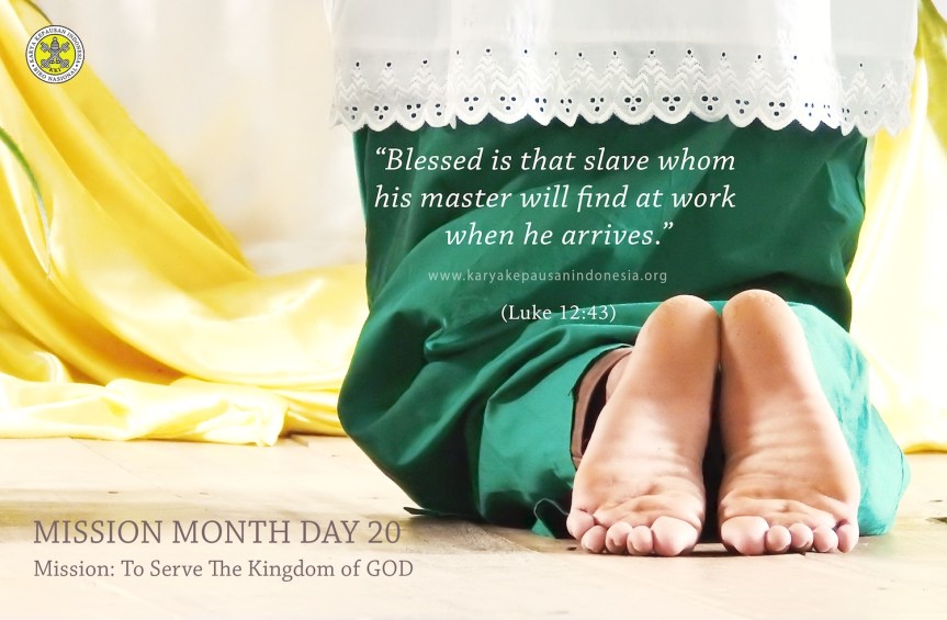 We are God’s workers in this world. We are demanded to work professionally with high quality of attitude and behavior. We should not be an inferior worker. We have to be highly motivated in working, know very well what we have to do for we know God’s will and use this working as a good opportunity for learning, training our potential, and growing for better. Let’s use the opportunity of working in a company, community or society service and Church wholeheartedly. We present ourselves and work as God’s servants who are always ready and sincere. Do not think of profit and loss. Make our job the chance and grace to serve the Kingdom of God.
