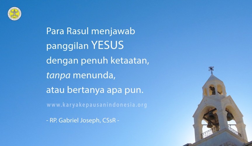 Hal yang menarik dan penting bagi refleksi kita adalah tanggapan para Rasul dalam menjawab panggilan Yesus. Mereka menjawab panggilan Yesus dengan penuh ketaatan, tanpa menunda, atau bertanya apa pun. Penginjil Matius menggambarkan reaksi para Rasul yang dipanggil Yesus, “…dan mereka segera meninggalkan perahu serta ayahnya, lalu mengikuti dia” (Mat. 4:22). Reaksi para Rasul ini seolah-olah seperti mereka dipanggil oleh Allah sendiri yang menuntut jawaban yang tegas, segera, dan total! Sikap segera juga dapat dipahami sebagai suatu tanggapan akan panggilan yang sifatnya mendesak atau urgen dalam mewartakan Kabar Gembira. Ini juga menjadi ajakan bagi kita orang Kristen, bahwa panggilan kita untuk mewartakan Kabar Gembira menuntut totalitas jawaban kita dan urgensi yang sama tentang mendesaknya pewartaan tentang Injil Tuhan kepada orang lain!
