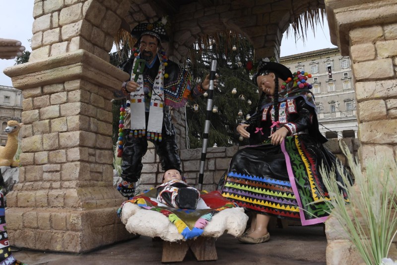 Saya menyapa kamu semua para peziarah yang datang dari Italia dan berbagai negara. Saya melihat orang Polandia ini, orang Brasil, dan saya melihat orang Kolombia di sana… keluarga, kelompok paroki, lembaga. Saya kembali mengharapkan agar permenungan akan Bayi Yesus, jantung dan pusat perayaan Natal, dapat mengobarkan sikap persaudaraan dan berbagi dalam keluarga dan komunitas. Dan untuk sedikit merayakan Natal, ada baiknya berkunjung ke 100 Adegan Kelahiran yang berada di bawah barisan tiang. Ini akan membantu kita juga.