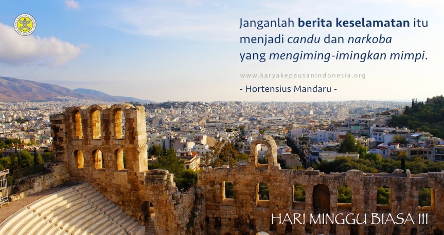 Third, Jesus’ preaching sets free to those who are really listening. After reading the Isaian quote, Jesus began His teaching with a surprising sentence: “Today this scripture has been fulfilled in your hearing” (v. 21). “In your hearing” means a condition: Isaiah’s prophecy will only be fulfilled for those who truly listen (obey to) the preaching of Jesus. The “future” in the preaching of the Prophets is now changed into “today” by Jesus. Jesus makes salvation present. The liberating message of the Gospel should hit and be felt by all humankind now and here. Do not let the message of salvation become an addiction and drug that lure dreams. This is very important, as we are living in the world of wealth chasing and race for the throne. It often happens that “heaven” is just merchandise of the usury hunters and power adventurers. Often, “heaven” is just a hoax of the money-lover preachers.
