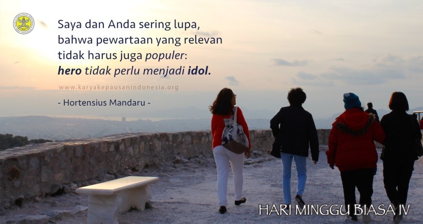 Tema Injil Minggu kemarin dilanjutkan hari ini: Yesus sebagai Pewarta Injil. Setelah Yesus mengumumkan visi dan misi, kini kita mendengarkan reaksi publik di kota-Nya sendiri. Ternyata reaksi yang negatif! Memang ada sedikit antusiasme di awal, tetapi selanjutnya hanya ada kemarahan dan penolakan, bahkan ada upaya pembunuhan terhadap-Nya. Untunglah, Yesus lolos dari maut. Pertanyaannya: mengapa Lukas menampilkan awal karya Yesus dengan sebuah kegagalan? Baru saja berkarya, di depan kerabat, kenalan dan orang sedesa-Nya, Yesus malah gagal. Mengapa?