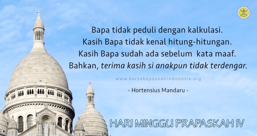 The father did not care for his son’s motivation and calculation. The prodigal son was welcomed with extravagant love. The prodigal was responded with a big party. The job seeker was reinstated as a son. Before his son arrived and spoke a word, his father had sent a clear sign: love! Before his son reached home, he had first run to meet the son, embrace and kiss him. Father’s love is a love without calculation. Father’s love came before the son’s apology. The son’s word of gratitude was not even heard. That is the main message of this story. It is not a coincidence that this story is called “a mini Gospel”: good news about Father’s abundant and unconditional love. The Father is always waiting for us to return, no matter how many times we turn and run away!