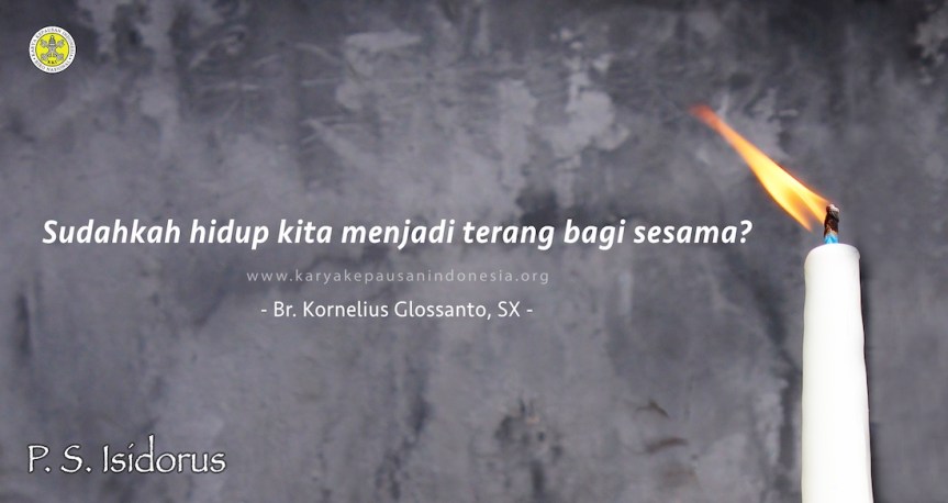 Yesus bersabda dalam Injil hari ini bahwa Ia adalah terang dunia. Barangsiapa mengikuti-Nya, ia tidak akan berjalan dalam kegelapan. Dan dikatakan lagi, orang-orang yang mengikuti Yesus juga akan memiliki terang hidup. Mengikuti Yesus berarti percaya bahwa apa yang dilakukan dan dikatakan-Nya merupakan kebenaran iman. Yesus merupakan wujud nyata Allah yang Mahakasih dan Maharahim. Jalan cinta kasih yang diajarkan-Nya itu yang menjadikan hidup kita bercahaya.