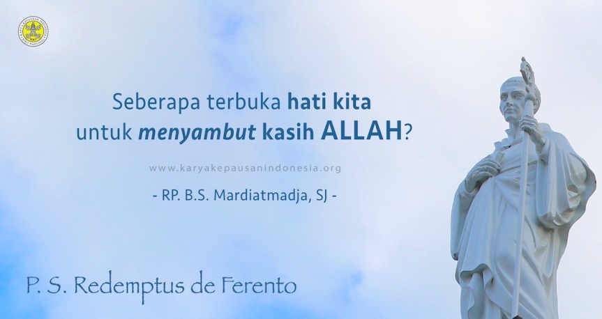 REFLEKSI KITA: seberapa dalamkah pengalaman kita seputar kasih setia Allah? Seberapa terbuka hati kita untuk menyambut kasih Allah? Marilah kita mohon Roh Kudus untuk setia kepada cinta Allah dalam Sang Putera.