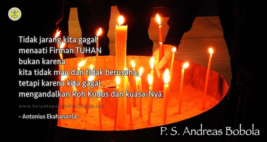 Konsekuensinya bagi kita para murid-Nya adalah, bahwa hidup kita sebagai seorang murid harus nyata benar berlandaskan Firman Tuhan. Roh Kudus akan mengingatkan kita supaya kehidupan seperti itu terjadi dalam hidup kita. Lebih lagi, kita juga diingatkan bahwa dalam menaati Firman Tuhan, kita tidak mengandalkan kuasa dan pengertian kita sendiri. Tidak jarang kita gagal menaati Firman bukan karena kita tidak mau dan tidak berusaha, tetapi karena kita gagal mengandalkan Roh Kudus dan kuasa-Nya. JIka kita setia mengandalkan Dia, maka segala segi kehidupan kita, segala relasi kita dengan sesama, akan berjalan serasi dengan kebenaran Firman-Nya. Dan dengan demikian hidup kita dalam mengasihi, mengalami dan menyebarkan kabar keselamatan-Nya hanya berlandaskan Firman dan kuasa Roh Kudus yang membawa kemuliaan bagi Allah Bapa di Sorga. (ek)