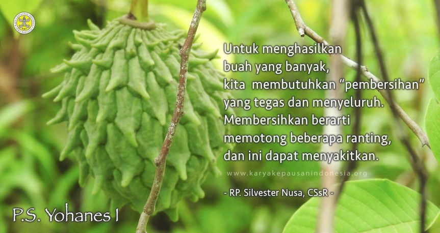 Tuhan Yesus berjanji bahwa kita akan menghasilkan banyak buah jika kita tinggal di dalam Dia dan mengizinkan Dia untuk membersihkan kita. Kita hendaknya membiarkan firman-Nya tinggal dalam diri kita, memenuhi budi dan hati kita, serta meresapi tingkah laku kita. Firman itu membersihkan kita. Tidak mungkin ada pemekaran hidup kristiani dan buah kalau kita tidak terus dibersihkan dari apa yang menghalangi. Apabila Firman Tuhan sungguh-sungguh diberi tempat dalam hati dan dituruti, halangan itu akan disingkapkan dan dihilangkan. Ketika Firman Tuhan tinggal di dalam kita dan kita tinggal di dalam Tuhan, hidup kita menjadi subur dan menghasilkan buah-buah kasih bagi sesama. Buah-buah itu adalah perbuatan-perbuatan baik yang dilakukan seturut perintah Yesus. Hidup kita menjadi kreatif untuk kebaikan bersama. Yesus datang tidak hanya untuk tinggal dalam diri kita, tetapi juga untuk memberikan hidup kepada orang lain melalui diri kita. Marilah kita senantiasa tinggal di dalam Yesus supaya kita menghasilkan buah yang berguna bagi orang lain.
